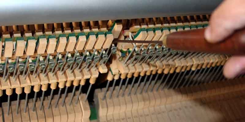 Tuning a piano is a delicate task that requires more than simply adjusting the tuning pins. Piano strings are under a greater amount of tension than guitar strings, which means that stabilizing the pitch requires more finesse. Inexperienced tuners risk breaking the strings, which can require additional parts and expertise to fix.